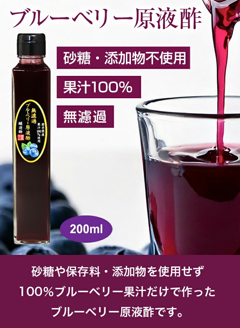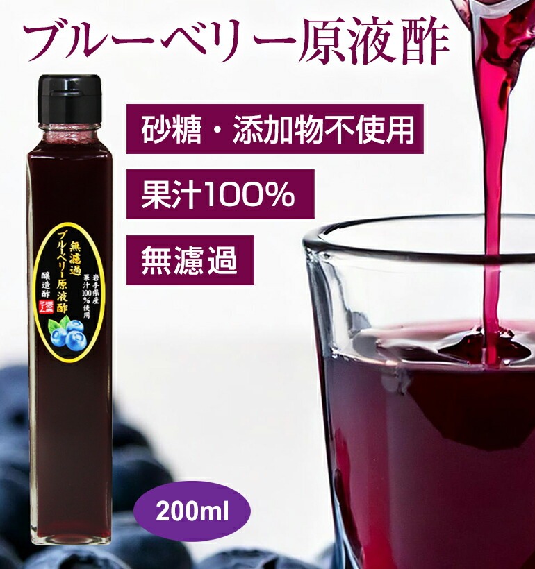 【送料無料】無濾過ブルーベリー原液酢(200ml) 果実酢 農薬不使用 岩手県産 国産 無濾過 無添加 砂糖不使用 添加物不使用 ストレート 100% ギフト お取り寄せ お取り寄せギフト プレゼント