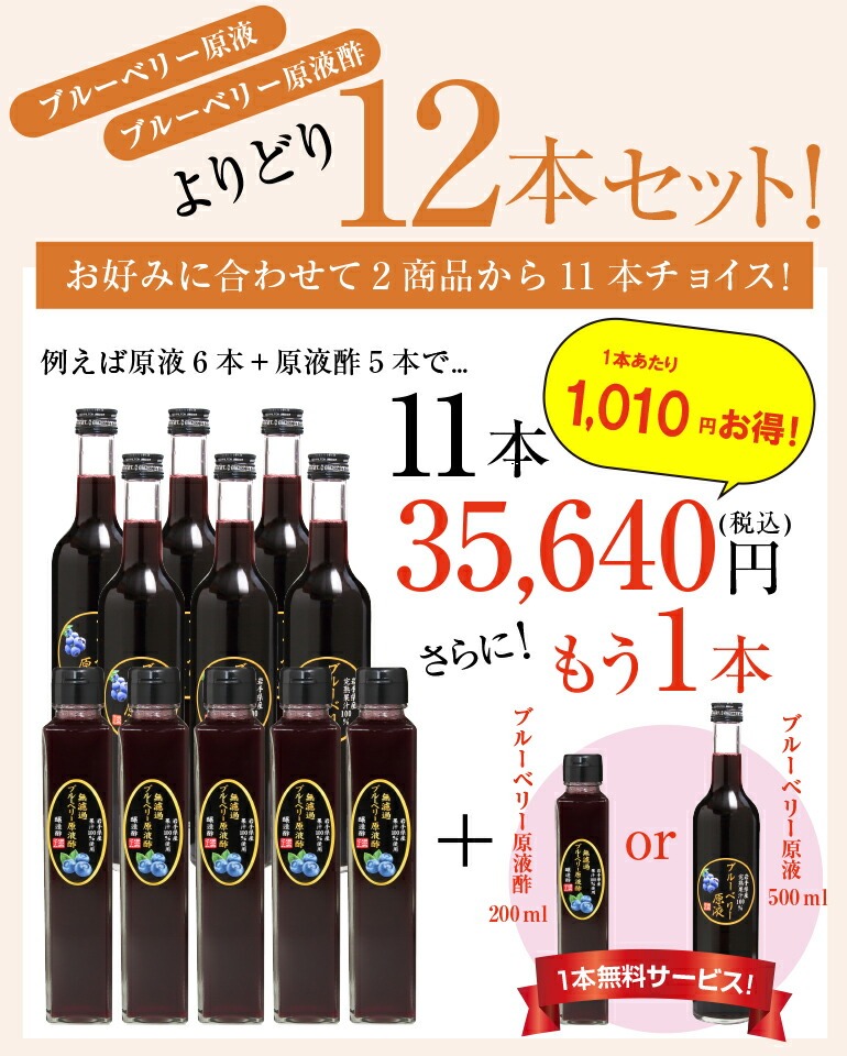 【よりどり11本+1本送料無料】ブルーベリー原液(500ml)・無濾過ブルーベリー原液酢(200ml) 農薬不使用 岩手県産 国産 無添加 無濾過 ギフト お取り寄せ プレゼント 菌活 静置発酵